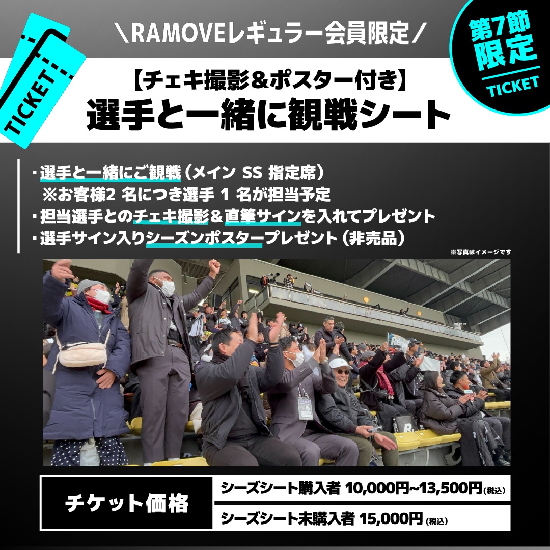開幕戦でもご好評をいただいた「選手と一緒に観戦シート」。第7節では、初めて駒沢オリンピック公園総合運動場陸上競技場にて本企画を実施いたします。 ホストエリア・世田谷区でのホストゲームで、選手と共に熱く楽しい試合観戦をお楽しみください! まだRAMOVE会員でない方も、是非この機会にご入会いただきお申し込みください。