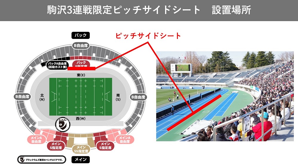 以下の3試合限定でピッチサイドシートを販売予定です。今回は埼玉パナソニックワイルドナイツ戦の販売のみとなります。浦安D-Rocks戦、静岡ブルーレヴズ戦については別途ご案内します。