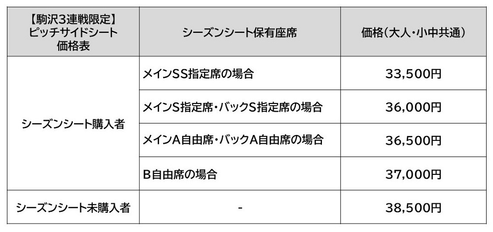 RAMOVE会員限定:駒沢3連戦限定ピッチサイドシート