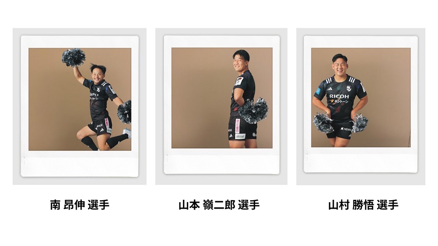 ブラックラムズ東京ホストゲームご来場の思い出を、チアリーダー姿に扮した"ちあちあポーズ"選手をデザインしたオリジナルフレームで撮影いただけます。今回フレームに登場する選手は、3月に誕生日を迎える山本嶺二郎選手、山村勝悟選手、南昂伸選手の3名です。ぜひご利用ください。