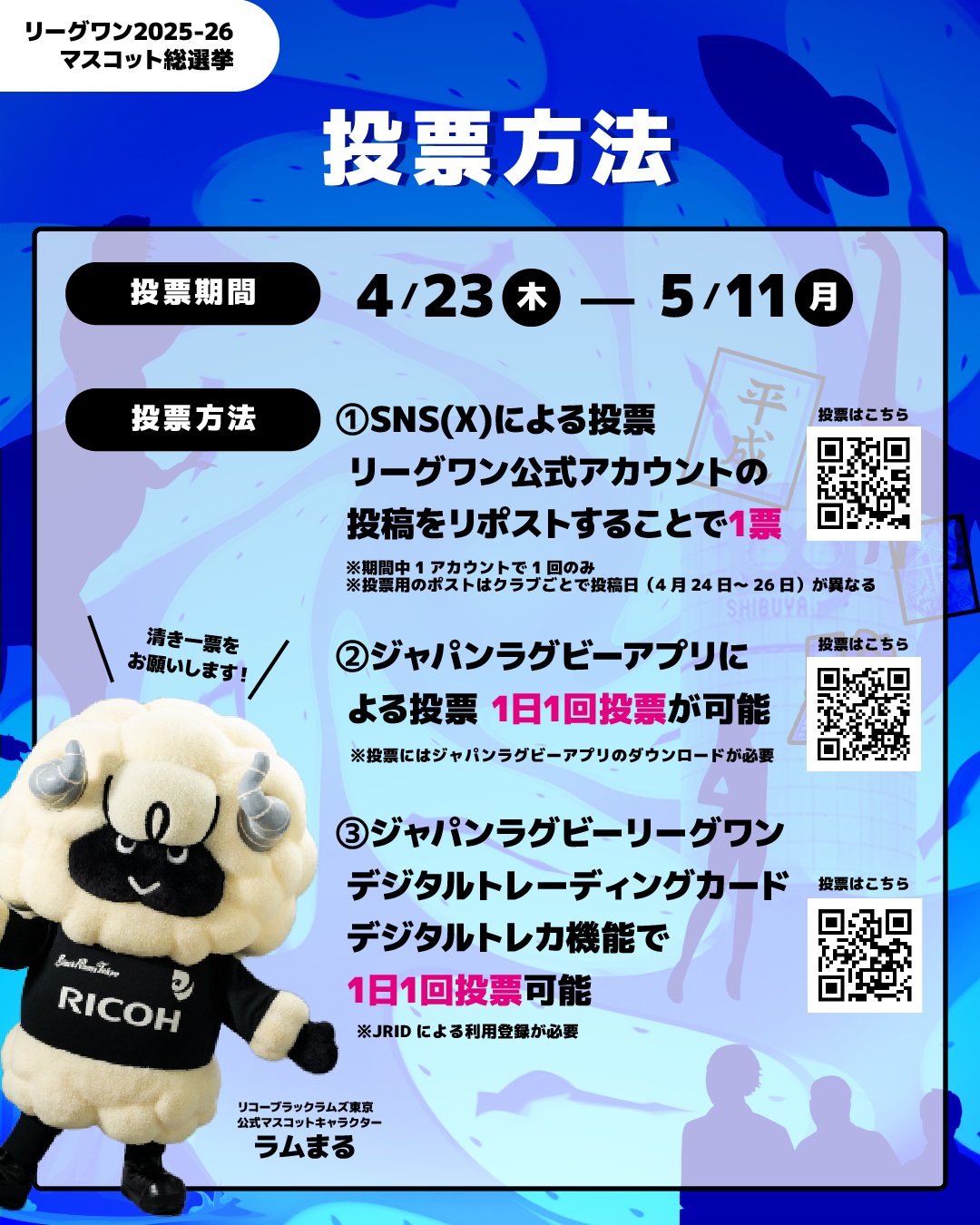 3. ジャパンラグビー リーグワンの公式Xアカウント(@LeagueOne_JP)のラムまる紹介投稿をリポストする(期間中1回のみ)