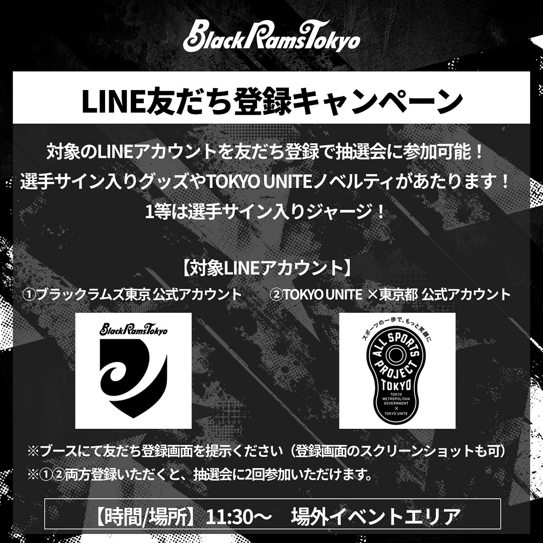 「ブラックラムズ東京×TOKYO UNITE」LINE友だち登録キャンペーン