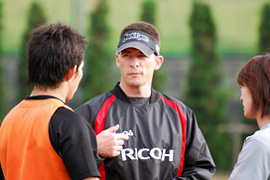 就任2年目のシーズン。トップリーグに復帰した2009年は、当初から大変厳しいシーズンになるだろうと思っていました。何故なら、前シーズンの日本選手権で、私たちが残した成績を見て、他のチームが私たちを甘く見なくなるということです。おそらくリコーラグビー部史上、最も厳しいシーズンになるだろうと予想していましたが、実際その通りになりました。リーグ開幕後の3試合で2勝したものの、選手たちは気が緩み、その後連敗。ここで、過去の悪癖やネガティブな思考などが、選手たちの気持ちを乱し始めました。最も厳しく、チーム間に大きな差が存在しないトップリーグで試合を重ねるなかで、私たちは、いわば成長期の悩みや苦しみといった経験をしました。就任2年目の私にとって最も大きな成果は、選手一人ひとりが今までの悪癖やネガティブな思考と正面から向き合い、知恵を使い、努力を続けることにより、どんなチームとも対等に闘えることに気付いたことです。私たちが賢く、力を合わせて立ち向かえば、トップリーグに居つづけられるばかりか、何年か後には上位チームに名を連ねることができる…と信じることができました。