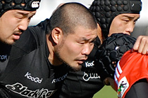 リコーラグビー部のメンバーとして、11度目のシーズンをキャプテンとして迎えているHO滝澤佳之。山品博嗣監督も「口数は少ないが、大事なときにメンバーの心に響く言葉を発することができる」ことを、キャプテン指名の理由のひとつにあげるように、滝澤の言葉には、滝澤にしか出せない風合いがある。