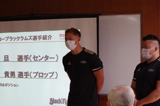今回は、CTB(センター)牧田旦選手とPR(プロップ)眞壁貴男選手が参加しました。