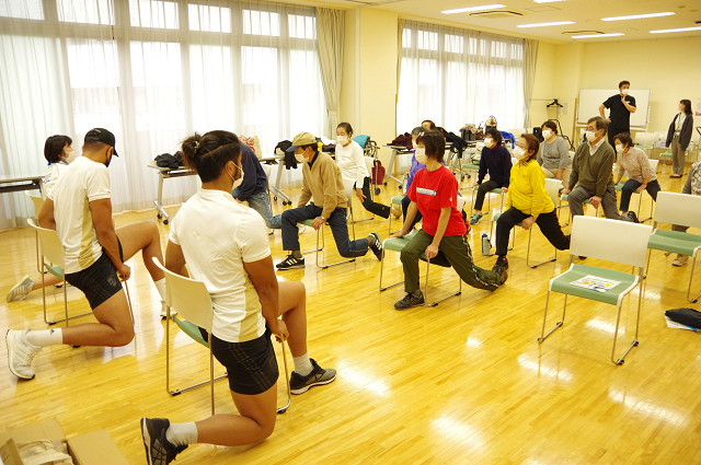 10月27日(水)に、世田谷区喜多見あんしんすこやかセンターの「喜多見いきいき講座”免疫力アップ体操講座”」に、選手・チームスタッフが実施にご協力させて頂きました。今回は、FL(フランカー)福本翔平選手とLO(ロック)デーモン・レアスレス選手が参加しました。