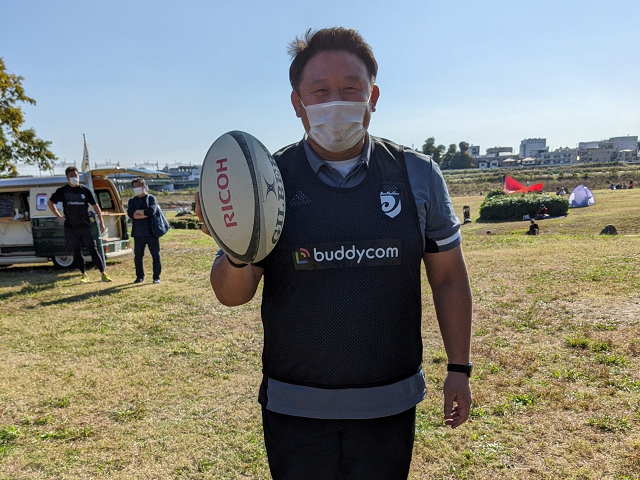 もうひとグループは、二子玉川エリアマネジメンツ様が運営するMizube Fun Baseのレンタルスペースをお借りして「Mizubeラグビー体験」を実施。