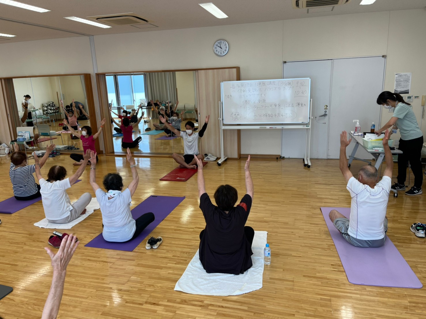 まずは、参加者の皆さんと一緒にヨガエクササイズ。