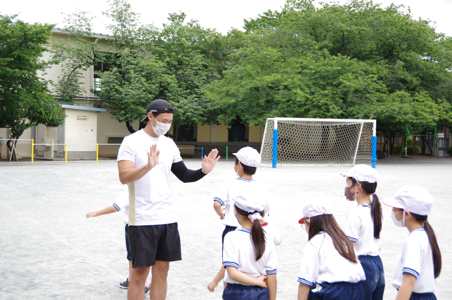 6月に世田谷区の「池ノ上小学校、経堂小学校、奥沢小学校、下北沢小学校」の3校へ訪問し、ゲストティーチャーの活動として「タグラグビー」の指導を行いました。