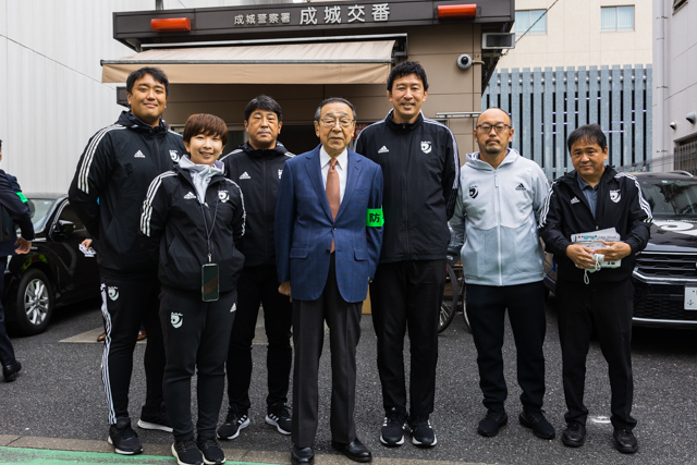 11月1日(火)成城学園前駅にて、成城警察広報啓発活動「特殊詐欺被害防止キャンペーン」に参加させていただきました。当日は、成城交番の方や地元企業に勤める方々と共に特殊詐欺被害防止チラシを配って啓蒙活動を行うと同時に、試合日程チラシや試合観戦チラシも配布させて頂きました。
