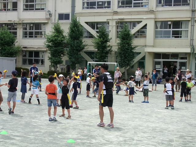 7月23日(木) 世田谷区立明正小学校で開催された「明正小サマーワークショップ2015」で、リコーブラックラムズの普及スタッフがタグラグビー教室を実施しました。
