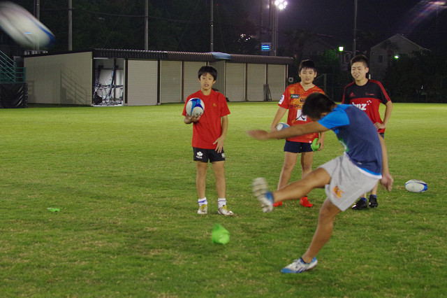 第7回目の放課後ラグビープログラム東京クラスを開催しました。ウォーミングアップでボール集めゲーム、スクエアパスを行いました。スクエアパスではキーポイントを思い出す目的もあります。ボールの数が増えると慌ててキーポイントを忘れてミスが多発しますが、しっかりとハンズアップしターゲットを見せて準備すれば対応できます。