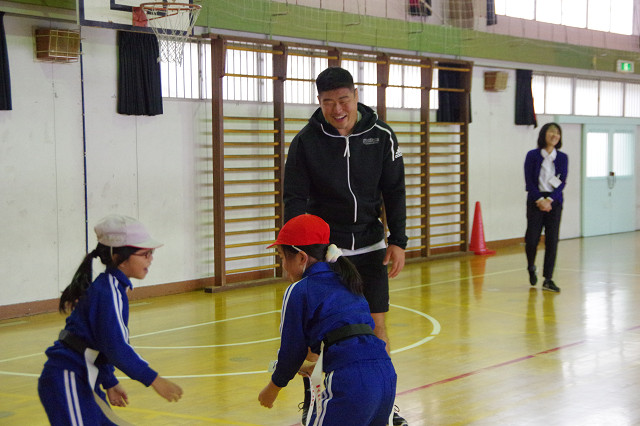 11月8日(金)盛岡市立仙北小学校のラグビー普及活動として、濱野選手、アマナキ大洋選手、髙橋選手、吉村選手、堀米選手の5名とラグビー部スタッフが3年生、4年生各4クラスの児童237名を対象にタグラグビー指導と座学を行いました。