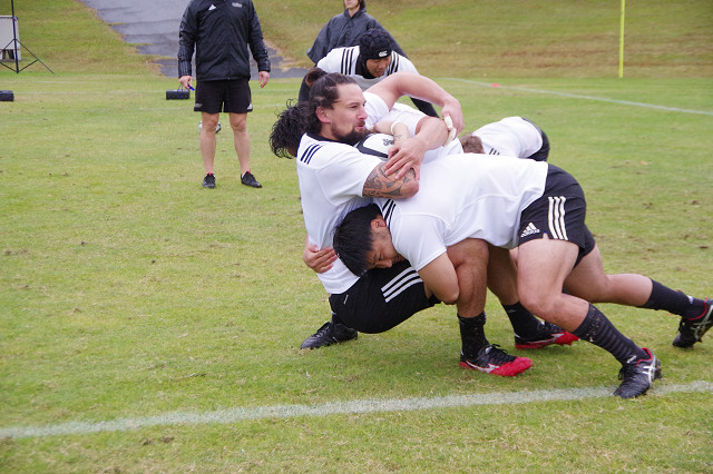 つま恋合宿5日目、最終日の今日は、8:30から10:30までの1部練習でした。冷たい雨が降る中でしたが、ウォーミングアップからしっかりとコンタクトを行いました。