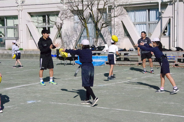 1月30日(木)世田谷区立玉堤小学校のゲストティーチャーとして、小池選手・深津選手・堀米選手の3名とラグビー部スタッフが6年生3クラスの児童95名を対象にタグラグビー指導を行いました。