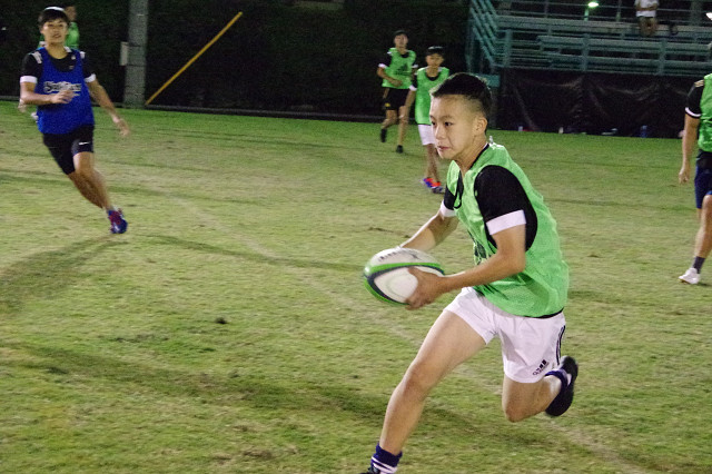 ゲストコーチとしてチームでスキルコーチをしているリッキー氏が、パスの基礎部分についてコーチングをしてくれました。パスの動作を早くするためには正確なフォームだけではなく筋力も必要で、まだまだ成長途中の生徒たちはうまくいかないところもありましたが、積極的にトレーニングにチャレンジしてました。全体のトレーニングでは生徒同士が回を重ねるごとに打ち解けてきて、プレー中の掛け声もたくさん出るようになり良い雰囲気になってきました。