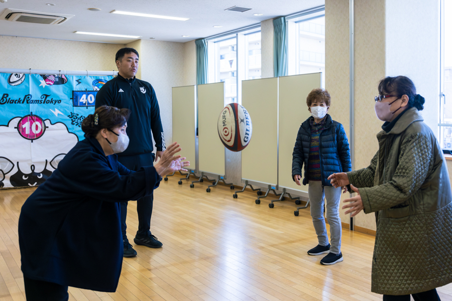 90歳を超える方からお子さんまで、ほとんどの方が初めて実際のラグビーボールに触ってみて、パスのやり方を教わって、ターゲットを狙って投げて、入ったり入らなかったり、思い思いに楽しんでいただけました。