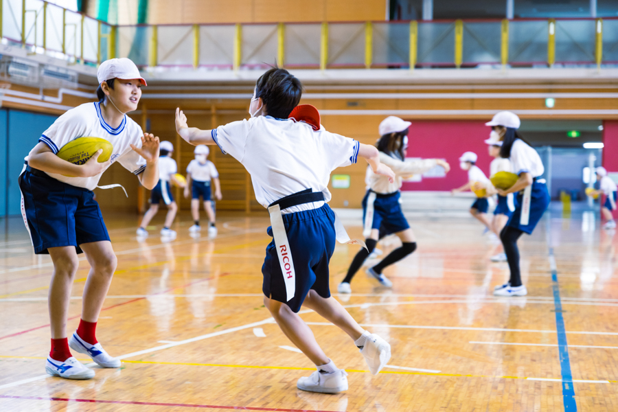 10月は、世田谷区の「東玉川小学校、池尻小学校」の2校へ訪問し、「タグラグビー」の指導を行いました。