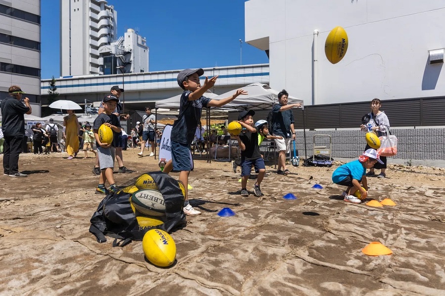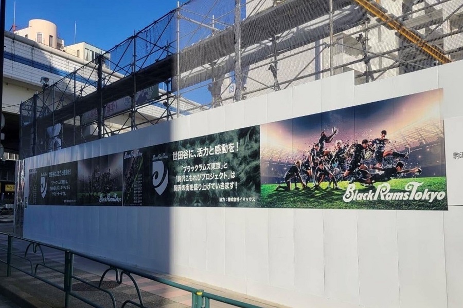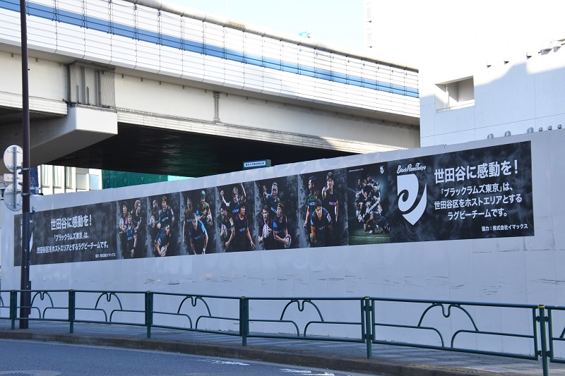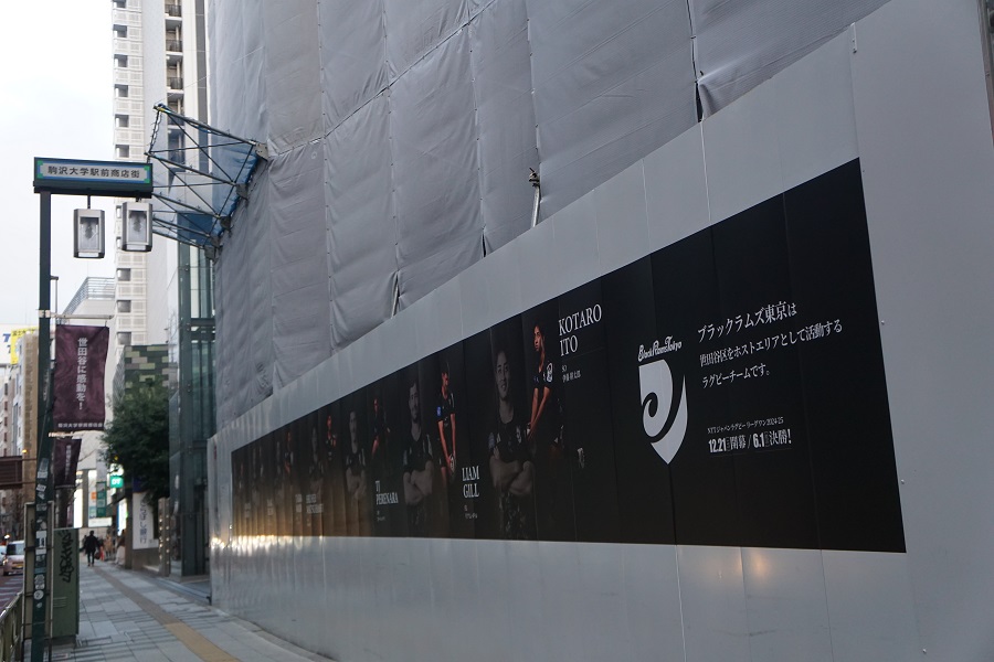 駒沢大学駅すぐに位置する駒沢パーククォーター。施設の工事中には4回にわたっての仮囲いへのポスター掲出、KOMAZAWA MOAI FARMグランドオープンでの野菜の苗植え、こまざわMOAI夏まつりでのラグビー体験会への参加など、ブラックラムズ東京も世田谷区で活動するラグビーチームとして様々な活動に参加してきました。現在も駒沢大学駅前商店街にチームフラッグを掲出いただいています。