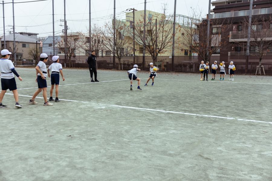 12月は、世田谷区の若林小学校、三軒茶屋小学校の計2校を訪問し、タグラグビーの指導を行うことができました。