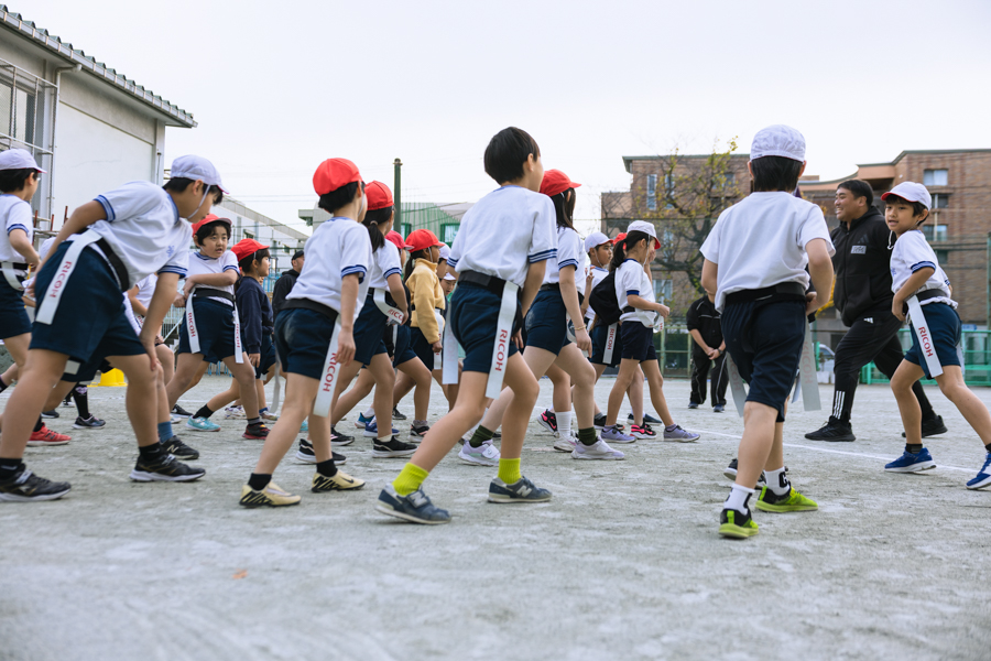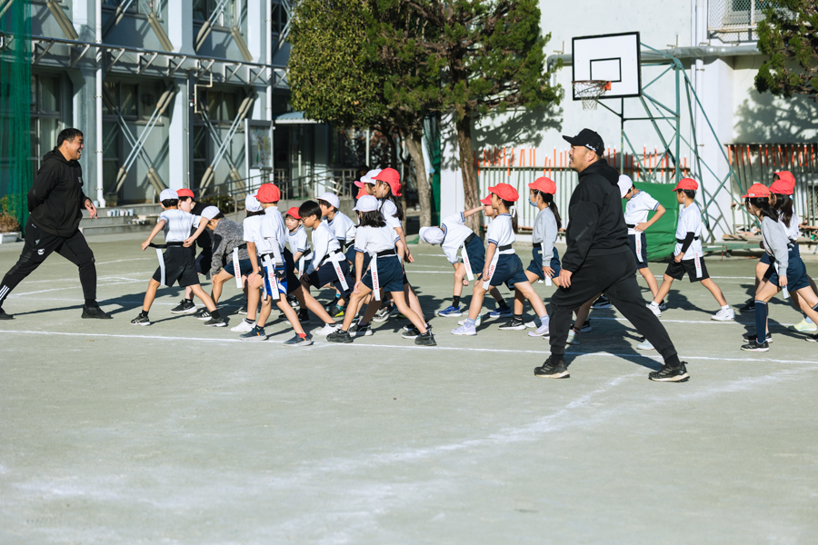 12月は、世田谷区内2校の小学校でゲストティーチャー授業を行いました。寒さがいよいよ増してきて、今月もインフルエンザによる学級閉鎖などがあり授業が中止になってしまったこともありましたが、授業に参加してくれた子どもたちは、いつものように元気いっぱい、笑顔いっぱいでタグラグビーを楽しんでくれました。
