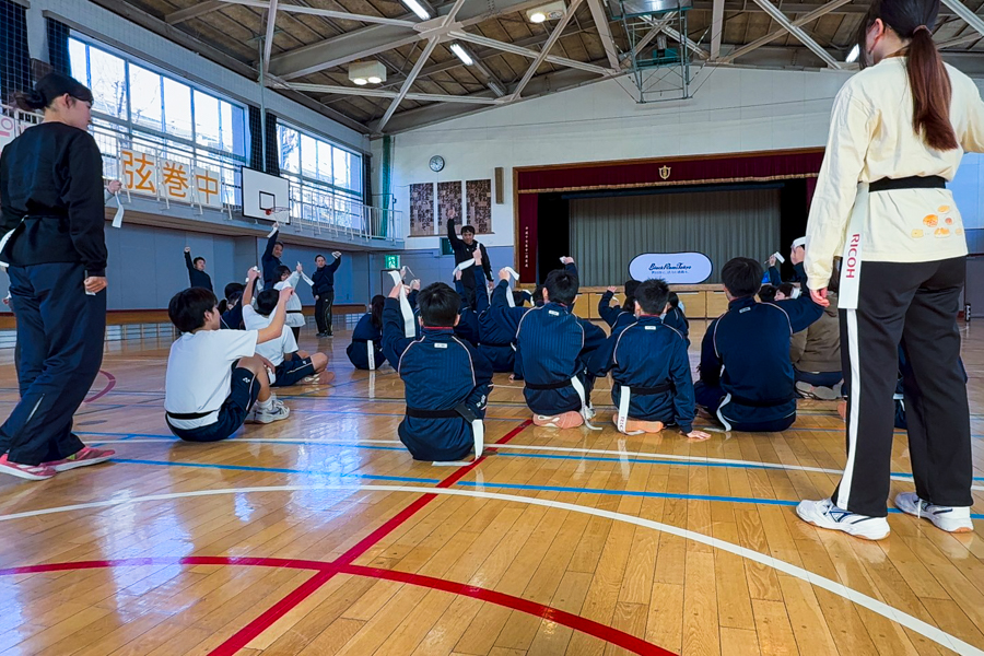 2月は、久しぶりに中学校を訪問することができました。小学生たちと比べるとずいぶんと大人びた印象があります。子供の成長は早いですね。指導する私たちも、参加者に合わせてメニューを変えたり工夫を重ねております。