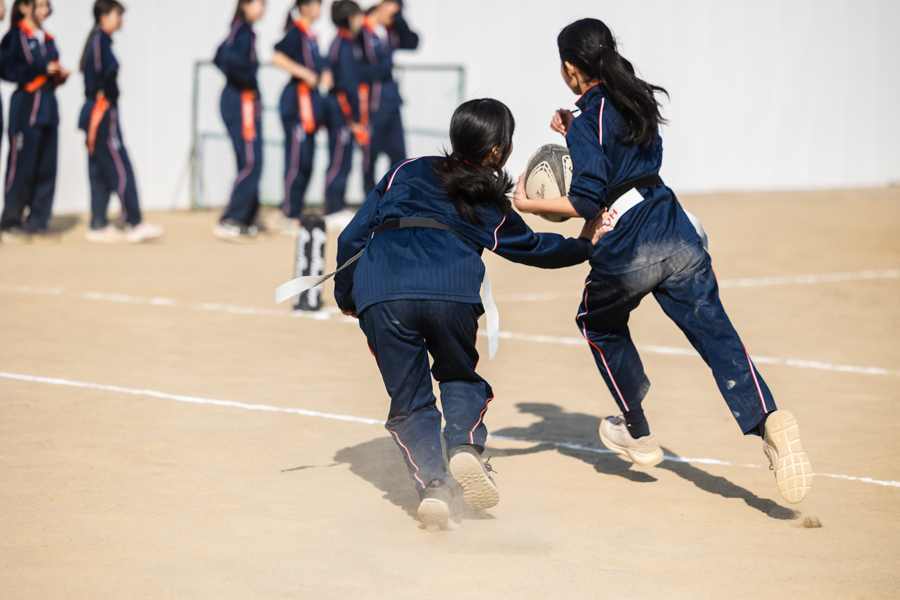 2月は、世田谷区の弦巻中学校(2回)を訪問し、タグラグビーの指導を行うことができました。