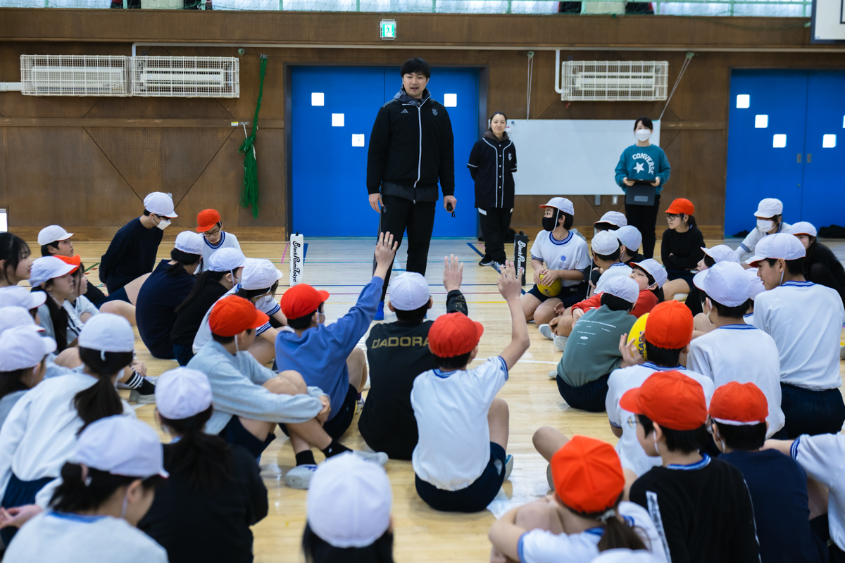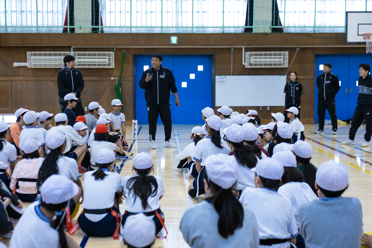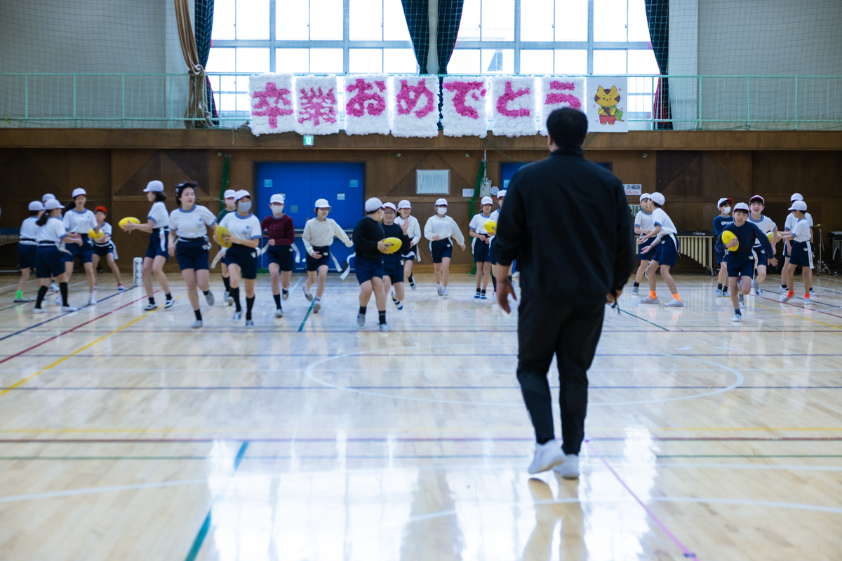 3月に訪問した弦巻小学校では、6年生の子どもたちを対象にタグラグビー教室を行いました。6年生にとっては、卒業を前にしてこのゲストティーチャー授業がみんなで一緒に行う最後のイベント的な行事となります。小学校卒業の思い出として記憶に残るように、ゲーム中心にみんなで楽しんでもらいました。