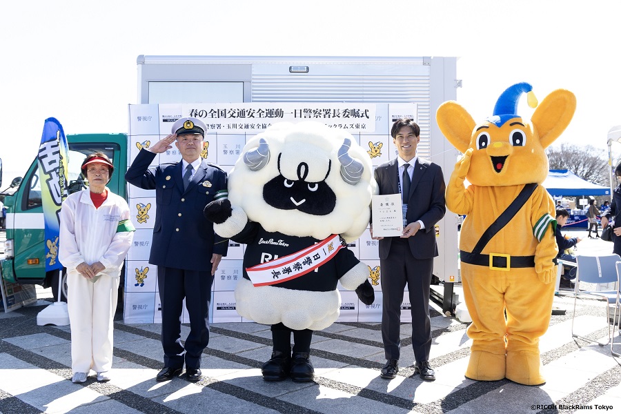 2026年3月14日(土)に駒沢オリンピック公園総合運動場陸上競技場で開催したリーグワン第11節 静岡ブルーレヴズ戦にて、ラムまるが玉川警察署の「一日警察署長」を務めました。本取り組みは、4月6日から15日まで実施された「春の全国交通安全運動」の事前PR活動の一環であり、当日はハーフタイムに交通安全運動パレードもおこないました。