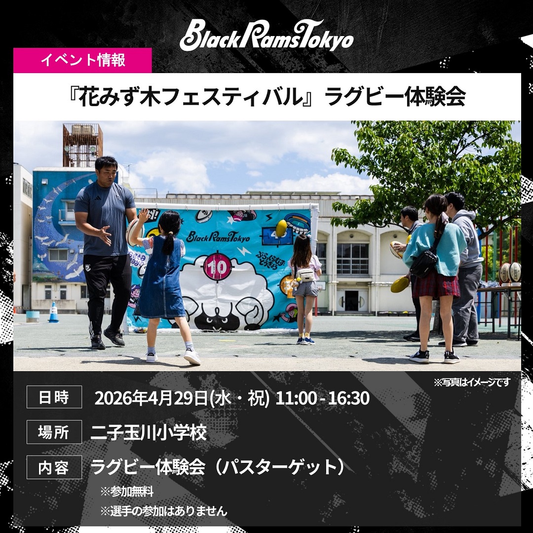 2026年4月29日(水・祝)に開催される「第44回 花みず木フェスティバル」への参加をお知らせします。当日はスタッフによるラグビー体験会を実施します。みなさまぜひお越しください。