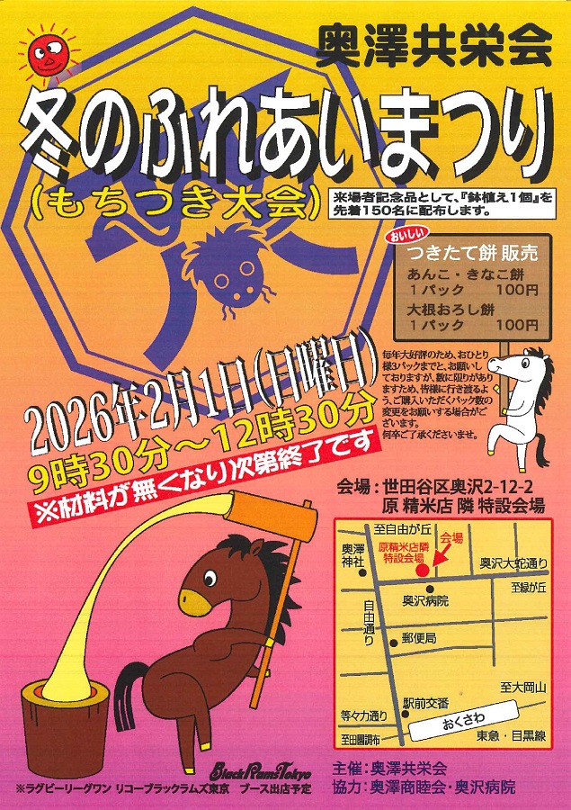 2月1日(日)「冬のふれあいまつり(もちつき大会)」参加のお知らせ